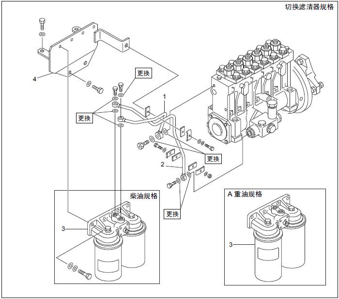 三菱S6R發(fā)動(dòng)機(jī)燃油濾清器、燃油管的拆卸,檢測(cè)