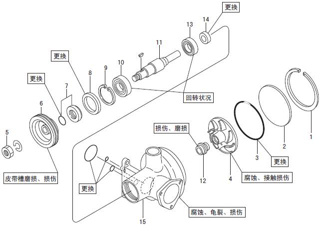 2.5 三菱S6R發(fā)動機(jī)水泵的解體、檢修