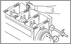 􀂌 測量三菱S6R柴油發(fā)動機(jī)曲軸的軸向間隙