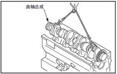 (2) 水平吊起三菱S6R柴油發(fā)動機(jī)曲軸,小心地從上方吊出。