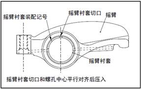 (3) 確認(rèn)搖臂和搖臂襯套的油孔一致。