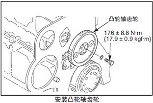 (1) 三菱S6R柴油發(fā)動機凸輪軸齒輪對準三菱S6R柴油發(fā)動機凸輪軸的定位銷后安裝。