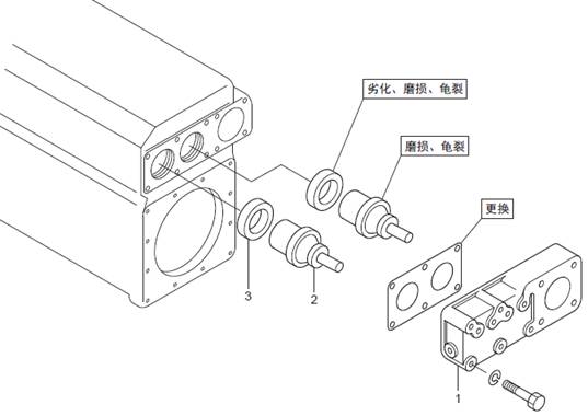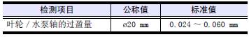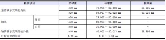 測(cè)量水泵泵體和軸的軸承瓦裝配部位、軸承瓦的外徑和內(nèi)徑。不在標(biāo)準(zhǔn)值范圍內(nèi)時(shí),更換新品。