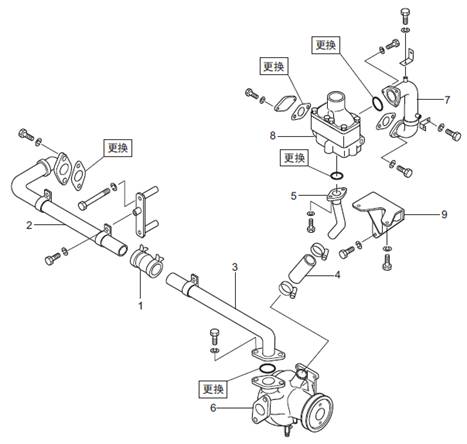 三菱S6R柴油發(fā)動(dòng)機(jī)空氣冷卻器用水泵、恒溫器、水管的拆卸,檢修