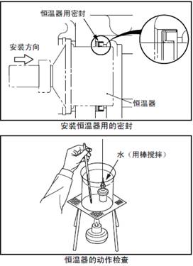 (1) 檢查恒溫器的密封,發(fā)現(xiàn)老化或龜裂時(shí)更換新品。
