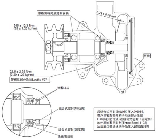 (2) 在組合式密封( 轉(zhuǎn)動(dòng)側(cè)) 上涂抹LLC。