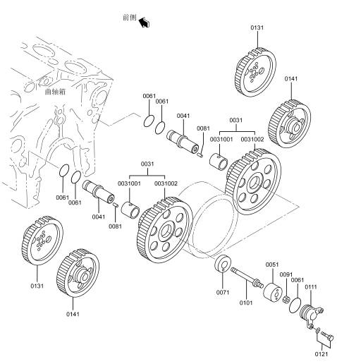 三菱R16柴油發(fā)動機惰齒輪左側(cè)