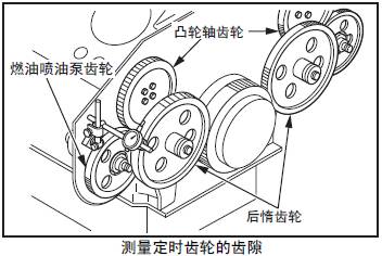 檢測要領(lǐng)參考「三菱S12柴油發(fā)動機(jī)本體的組裝」的「檢測三菱S12柴油發(fā)動機(jī)正時(shí)齒輪的齒隙」項(xiàng)。