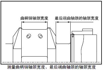 (2) 測量曲柄銷和最后端三菱S12柴油發(fā)動機(jī)曲軸頸的軸頸寬度。根據(jù)最后端三菱S12柴油發(fā)動機(jī)曲軸頸的軸頸寬度的磨損程度使用加大尺寸三菱S12柴油發(fā)動機(jī)推力片時,按照加大尺寸三菱S12柴油發(fā)動機(jī)推力片的規(guī)格研磨三菱S12柴油發(fā)動機(jī)曲軸。
