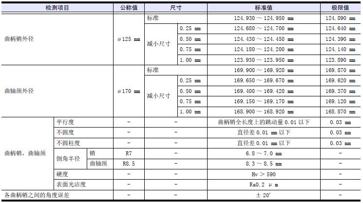 使用加厚尺寸的軸瓦,按照和加厚尺寸軸瓦對應(yīng)的標(biāo)準(zhǔn)值研磨三菱S12柴油發(fā)動機(jī)曲軸。
