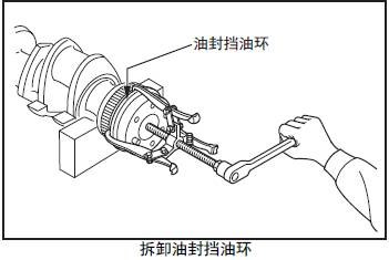 用齒輪拆卸器將三菱S12柴油發(fā)動機(jī)油封擋油環(huán)從三菱S12柴油發(fā)動機(jī)曲軸上拆出。
