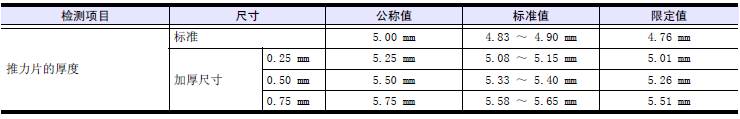 注: 使用的前后2片三菱S12柴油發(fā)動機(jī)推力片的厚度差不超過0.25 mm。
