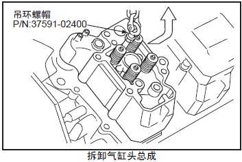 注: 三菱R16柴油發(fā)動機氣缸頭由定位銷固定,要垂直于安裝面拆卸。