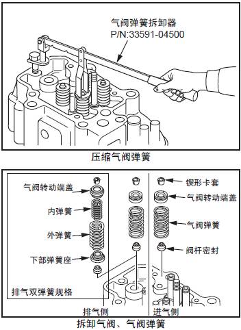 1.11 拆卸氣閥、三菱R16柴油發(fā)動機氣閥彈簧