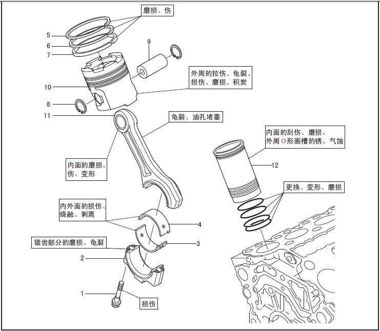 三菱R16柴油發(fā)動機(jī)缸套、活塞、連桿的解體、檢修