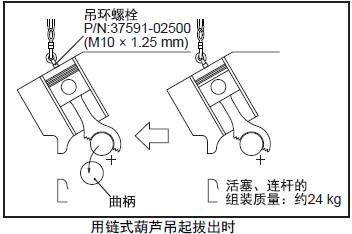 (2) 在三菱R16柴油發(fā)動機(jī)活塞頂部的螺孔內(nèi)安裝吊環(huán)螺栓,吊住三菱R16柴油發(fā)動機(jī)活塞不使其下落。