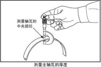 超過極限值時(shí),將主軸瓦上下整套更換。根據(jù)三菱R16柴油發(fā)動(dòng)機(jī)曲軸頸的磨損程度,在三菱R16柴油發(fā)動(dòng)機(jī)曲軸重新研磨使用時(shí),使用加厚尺寸的主軸瓦。