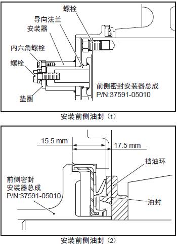 (4) 旋緊導(dǎo)向法蘭上的螺栓,將三菱柴油機油封裝入前端蓋。