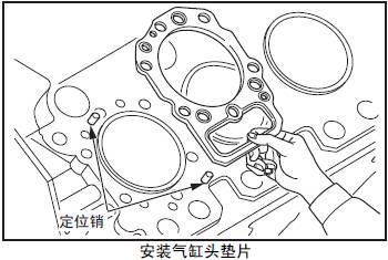 (2) 將涂抹液體密封膠后的氣缸墊片,對準定位銷后安裝。