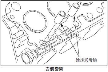 套筒的外表面涂抹潤滑油后放入套筒孔內(nèi),使其緩慢座落在三菱R16柴油發(fā)動機凸輪軸上。