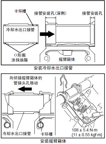 (6) 將冷卻水出口連接管朝對接的三菱R16柴油發(fā)動機搖臂箱體移動插入。