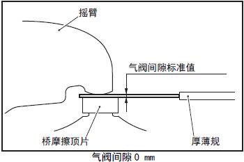 (2) 在搖臂和橋摩擦頂片之間插入和氣閥間隙標準值相同厚度的厚薄規(guī)。( 氣閥間隙0 mm)