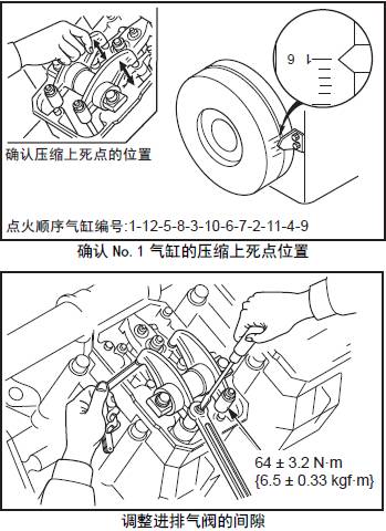 注: 這時,如果No.1 氣缸的進排氣氣閥間隙都為規(guī)定值的話,氣閥沒有被壓下。在排氣上死點附近時,氣閥被壓下。