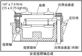 (2) 三菱R16柴油發(fā)動機搖臂軸的銷孔和定位銷對準后,將搖臂總成安裝在三菱R16柴油發(fā)動機搖臂箱體上。