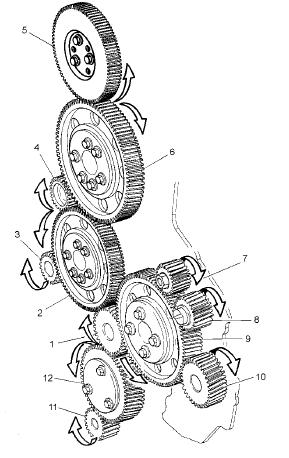 進(jìn)行檢查時,正時齒輪必須按照正確的方向轉(zhuǎn)動(從前部看為順時針方向),以便消除所有的齒隙。