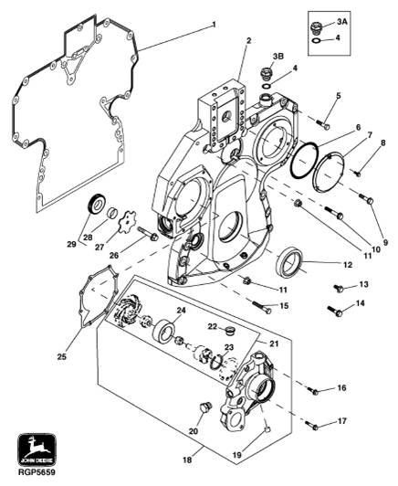 John Deere約翰迪爾強(qiáng)鹿柴油發(fā)動(dòng)機(jī)正時(shí)齒輪蓋、水泵、曲軸下惰輪零件圖冊(cè)