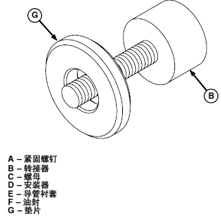 6 導(dǎo)管襯套 (E) 裝在安裝器和油封上。