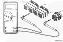 從康明斯電子控制模塊 (ECM) 上斷開原始設(shè)備制造商 (OEM) 線束接頭。將一根測(cè)試導(dǎo)線插入 OEM 線束接頭上的開關(guān)回路觸針,然后將鱷魚夾連接到萬用表表筆上。將另一根導(dǎo)線插入 OEM 線束接頭上的風(fēng)扇控制開關(guān)信號(hào)觸針,然后將鱷魚夾連接到萬用表另一個(gè)表筆上。