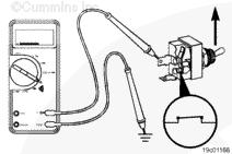 找到最大康明斯ISB5.9 G CM2180 發(fā)動(dòng)機(jī)轉(zhuǎn)速開關(guān)。給這些導(dǎo)線貼上帶有開關(guān)位置或?qū)Ь€號(hào)碼的標(biāo)簽。從開關(guān)上拆下電氣接頭。調(diào)整萬用表以便測(cè)量電阻。將萬用表一個(gè)表筆接觸開關(guān)一個(gè)端子。將另一根萬用表表筆接觸開關(guān)的另一端子。