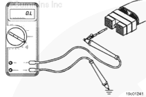 將開關(guān)置于斷開位置并測(cè)量電阻。萬用表必須顯示閉路(10 歐姆或更?。?。如果電路沒有閉合,則開關(guān)故障。關(guān)于更換步驟,參考 OEM 故障判斷和排除手冊(cè)。如果電阻值正確,必須檢查開關(guān)是否仍舊存在對(duì)地短路。
