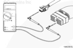 • 從 ECM 上斷開(kāi)康明斯ISB5.9 G CM2180 發(fā)動(dòng)機(jī)線束 ECM 1號(hào)接頭和 2號(hào)接頭。從康明斯ISB5.9 G CM2180 發(fā)動(dòng)機(jī)線束上斷開(kāi)爆震傳感器。設(shè)置萬(wàn)用表以便測(cè)量電阻。