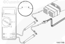 將一根測(cè)試導(dǎo)線插入到 OEM 線束接頭的變速箱換檔調(diào)節(jié)器信號(hào)觸針中。用萬(wàn)用表的另一根表筆接觸康明斯ISB5.9 G CM2180 發(fā)動(dòng)機(jī)缸體接地。測(cè)量電阻。