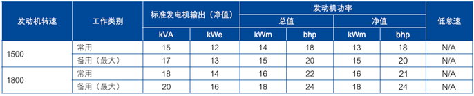 功率:1 500rev/min時,15 kWm