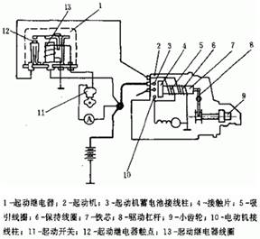 如果齒輪與飛輪齒端相對,不能馬上嚙合,此時彈簧壓縮,當齒輪轉(zhuǎn)過一個角度后,齒輪與飛輪迅速嚙合。當鐵芯移動到使短路開關閉合的位置時,短路線路接通,吸引線圈被短路,失去作用,保持線圈所產(chǎn)生的磁力足以維持鐵芯處于開關吸合的位置。