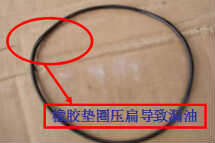 造成此故障的現(xiàn)象:發(fā)動機起動后,前端出現(xiàn)噠、噠、噠、、、、異響,發(fā)動機工作正常,并且在轉向泵與缸體結合處出現(xiàn)漏油的現(xiàn)象。 造成此故障的原因分析:可能是轉向泵安裝不良,導致轉向泵齒輪與其它齒輪在嚙合時出現(xiàn)異常響聲。另外,可能是水泵、氣泵齒輪安裝不良所致。該問題的主要原因在連接轉向泵進出油管時,由于安裝困難,用戶自行將轉向泵拆下,但在安裝時未能正確裝配,故而出現(xiàn)上述問題,圖片中的墊子被壓潰致使其接觸面漏油。 此故障的維修解決方法:更換轉向泵齒輪(或氣泵、水泵齒輪)
