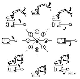 此款挖掘機(jī)具有多功能,可以安裝多種專用前部工作裝置,完成各類作業(yè)。下面只對(duì)最簡(jiǎn)單的操作進(jìn)行說明。