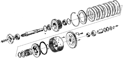 前進二擋:嚙合前進擋,二擋兩離合器: