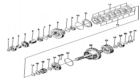 ZL30E龍工自制定軸式變速箱傳動簡圖