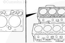 康明斯ISF3.8 CM2220 AN 和 IAN 發(fā)動機(jī)缸蓋密封墊采用專門的金屬設(shè)計,水孔周圍的兩側(cè)都有印制的 O 形圈。密封墊上的壓紋密封住了缸孔。密封墊還提供節(jié)流作用,控制缸體流至缸蓋的冷卻液流。本手冊涉及的發(fā)動機(jī)不需要進(jìn)行缸蓋密封墊分級。對于缸蓋或缸體燃燒表面的重修,可以使用厚度增大的缸蓋密封墊。