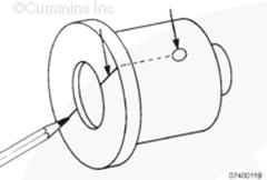 凸輪軸惰輪軸和液壓泵惰輪軸中的油孔必須按照特定方位安裝。如果軸的方位不正確,則會(huì)導(dǎo)致齒輪襯套故障。