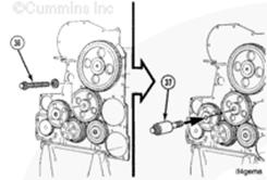 一些康明斯KTA柴油發(fā)動(dòng)機(jī)水泵惰輪帶有采用壓配合設(shè)計(jì)的惰輪軸,在拆卸惰輪時(shí)無(wú)需將該軸從缸體上拆下來(lái)。
