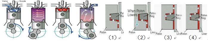 往復活塞式發(fā)動機運轉時活塞環(huán)會出現“泵油”現象,雖然現階段的發(fā)動機活塞環(huán)采用的“梯形環(huán)”和“扭曲環(huán)”可減少泵油現象,但不可避免的仍然會有少量的機油進入到燃燒室內參與燃燒。