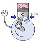為了使發(fā)動機能夠正常運轉,曲軸箱內壓力不能超過一定的數值,通常采用的方法是通過管道把活塞環(huán)泄露的少量高溫燃氣通過“下排氣管”導入大氣當中或進入進氣管中,此時曲軸箱內的機油油霧將同時排到大氣當中或參與燃燒,致使有少量的機油消耗。
