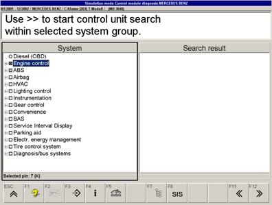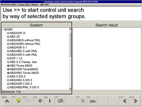 如果名稱前面的框有一灰色背景,在此組列出的系統(tǒng)在自動組搜索不能發(fā)現(xiàn)。 (通過點擊加符號或F7可以獲得清單)。如果安裝在車上的控制單元在組搜索時不能被找到,相關(guān)的控制單元必須在清單中手動選擇。通過F7, 你可以打開或關(guān)閉自動選擇。