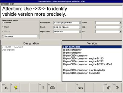 F12 至繼續(xù)選擇菜單,再次選擇菜單上用于車輛時別的要求的參數(shù)(驅(qū)動型式、車型、型號等)可以被選擇。