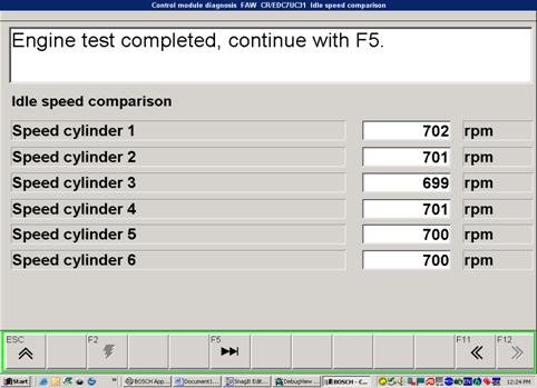 怠速比較測試時,KTS提供特定發(fā)動機轉(zhuǎn)速(如700/RPM),同時ECU取消發(fā)動機怠速控制功能,讀取各缸轉(zhuǎn)速。